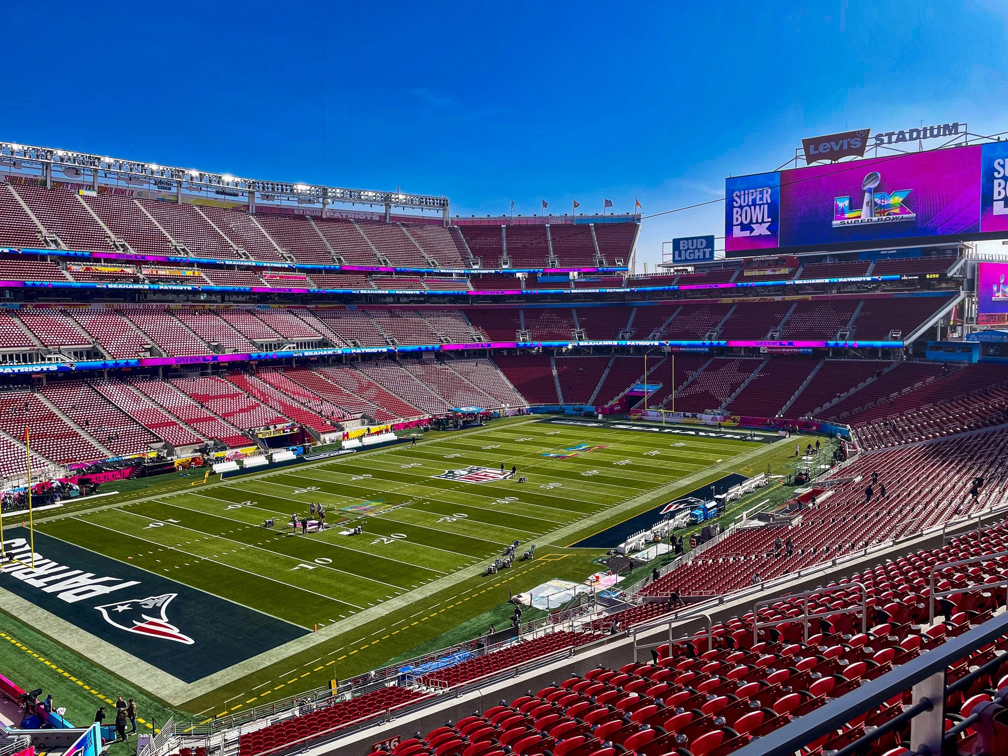Shots of fans in Levis Stadium, San Jose for Super Bowl LX and Bad Bunny halftime performance